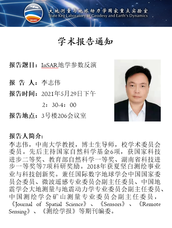 2021年5月29日凯发K8大地测量与地球动力学国家重点实验室学术预告