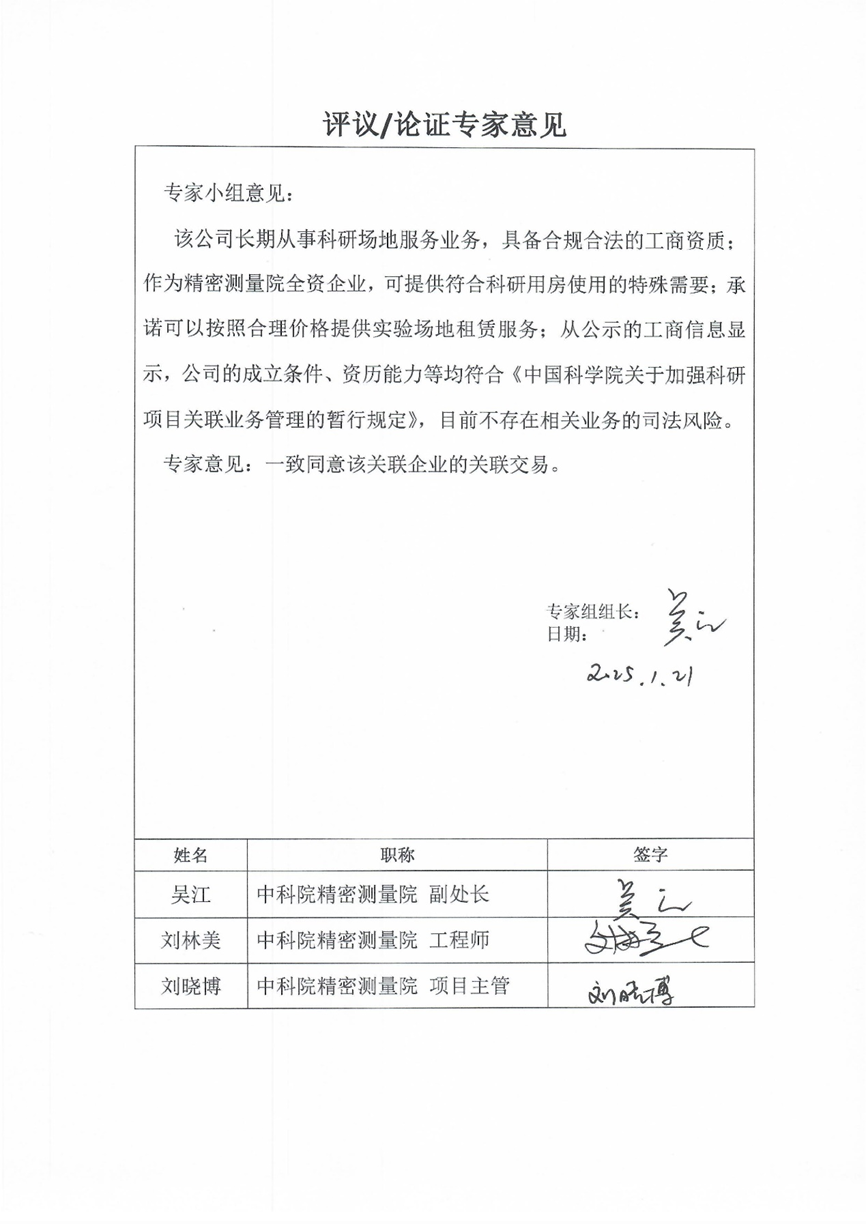 中国科研实验室精密测量科学与技术创新研究院关于向武汉中科开物技术有限公司租赁系统集成调试实验场地的关联交易公告