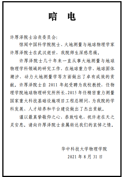 华中科技大学物理学院唁电