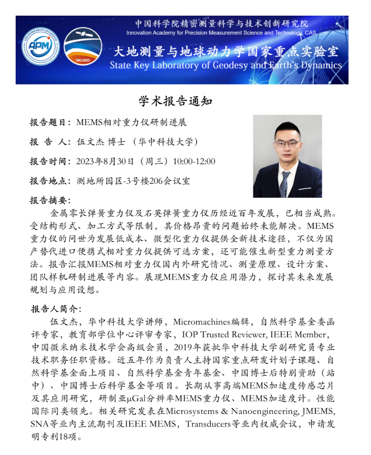 2023年8月30日大地测量与地球动力学国家重点实验室学术预告