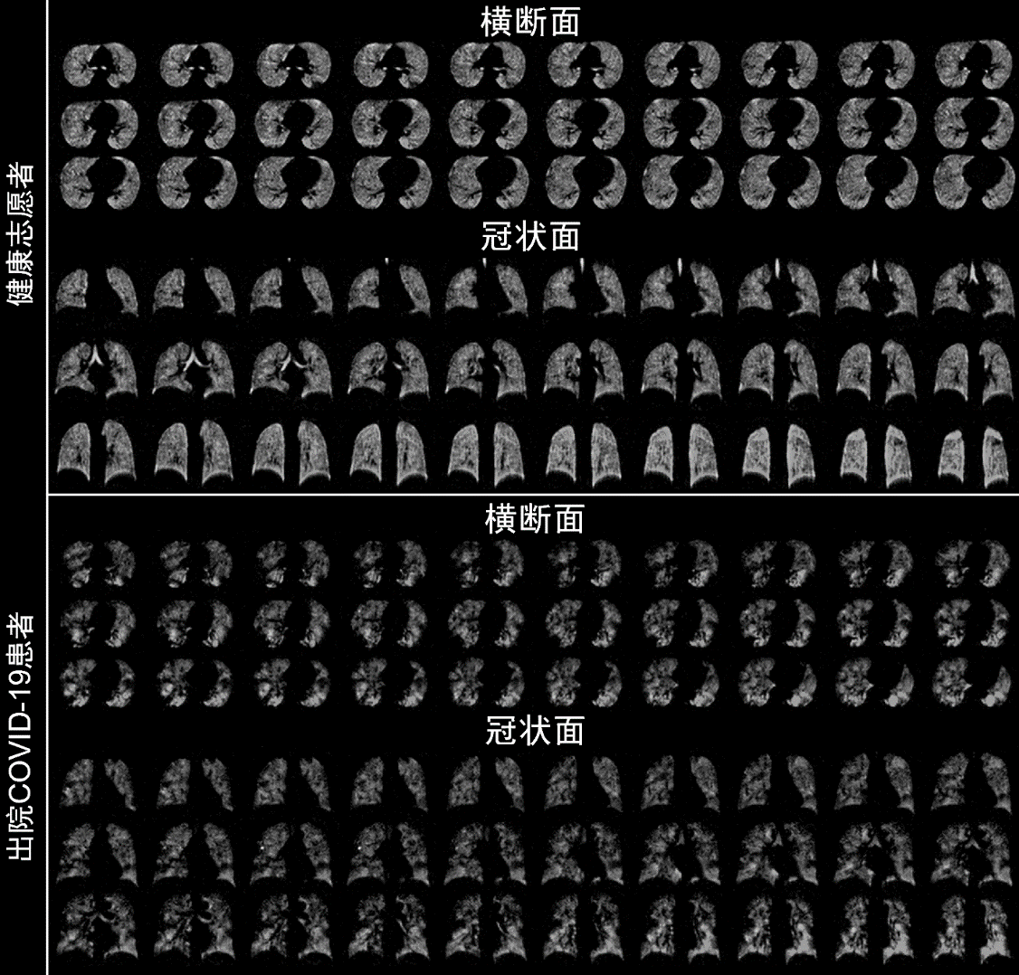 健康受试者和COVID-19出院患者的典型高分辨通气功能图像